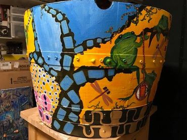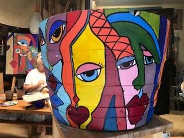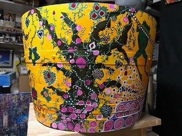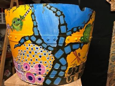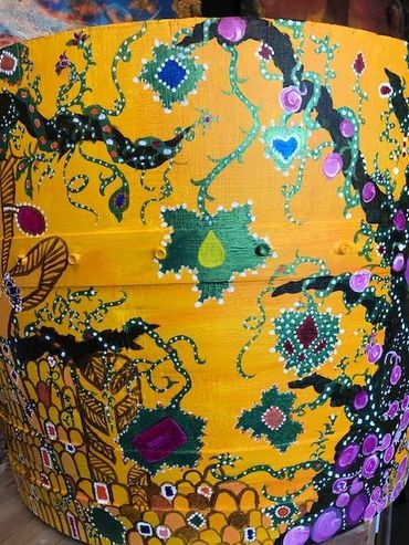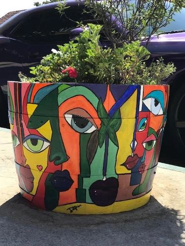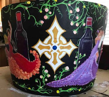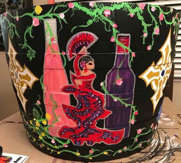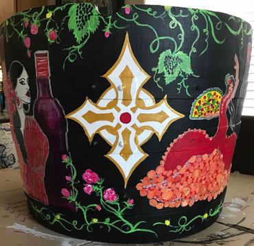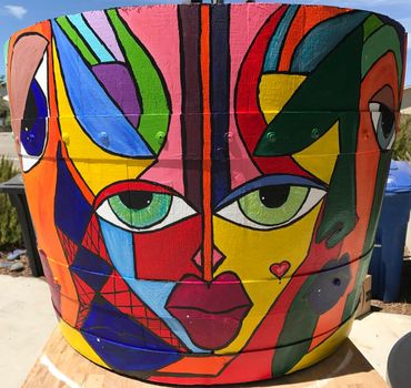 Although the wine barrels you see here were created as part of a Paso Robles beautification initiative by the Downtown Main Street Association, some were commissioned for permanent private collections. If you would like wine barrels painted with a colorful creative design for your home or business, please inquire through the website's contact page to get specifics on time frame, size and pricing.